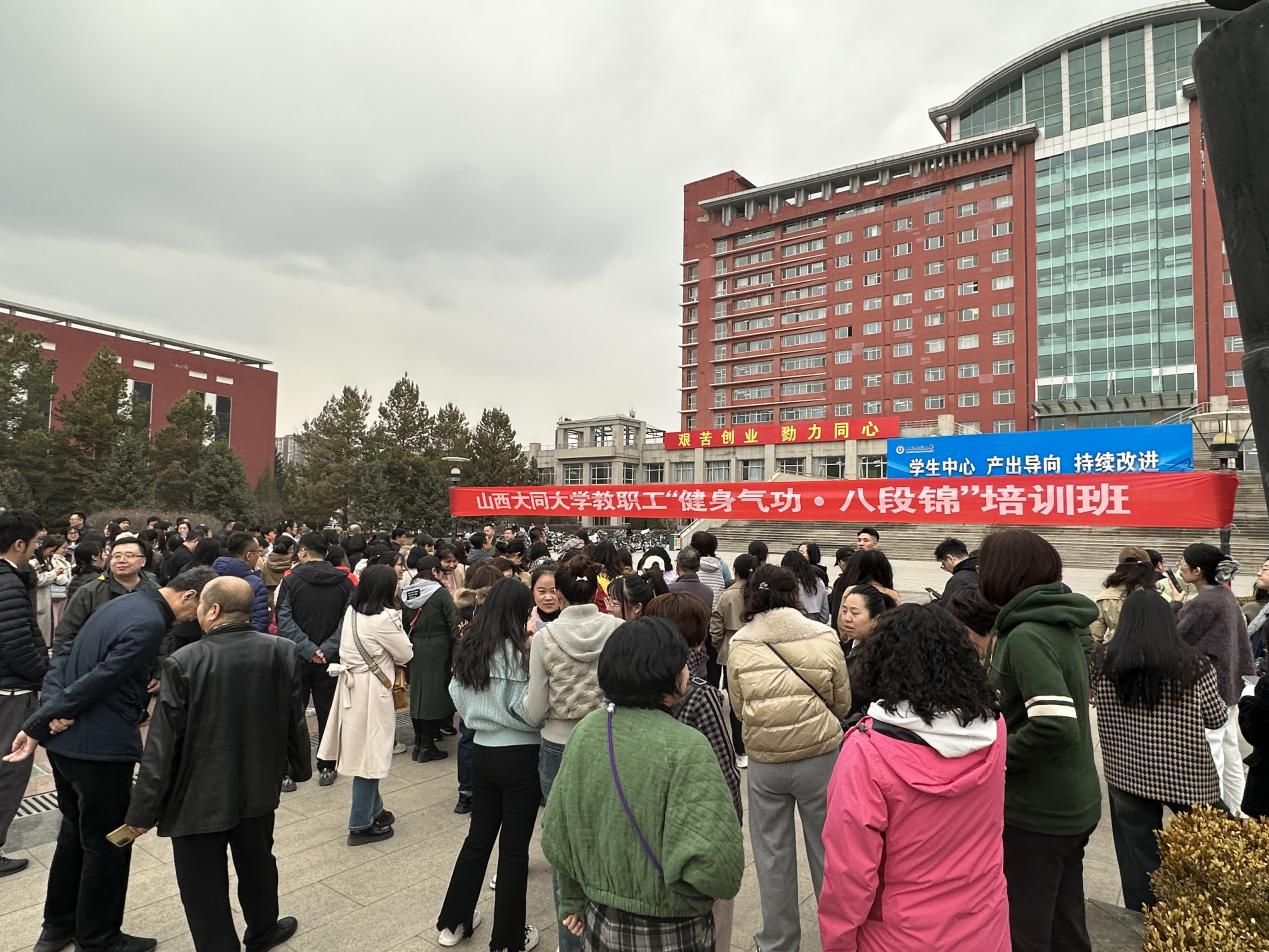 为更好地服务职工群众,丰富职工文化生活,进一步增强职工群众的锻炼意识,3月21日,校工会举行山西大同大学2024年教职工“健身气功八段锦”培训班开班仪式,校工会主席侯桂兰主持仪式。培训班特邀体育学院于强国等三位老师担任指导老师,培训于每周四下午在中校区喷泉广场进行,全校各基层工会约600余名教职工参加。