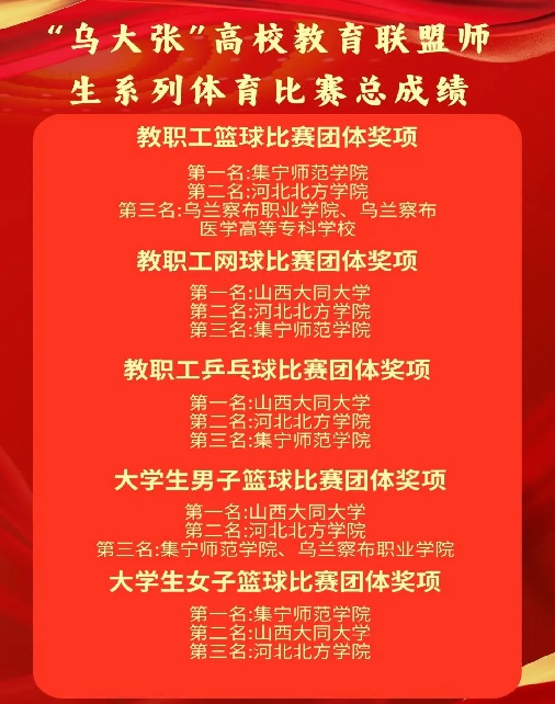为深化“乌大张”高校教育联盟院校间的交流与合作,凝聚师生协作精神,10月24日至27日,“乌大张”高校教育联盟教职工及学生球类邀请赛开幕式在集宁师范学院白海校区体育馆举行。