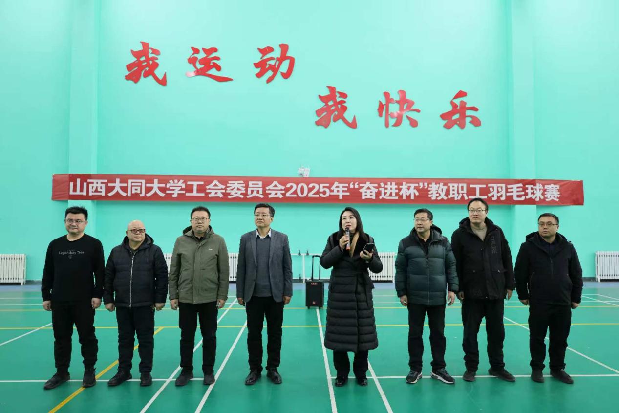 12月10日,山西大同大学工会委员会主办的“奋进杯”教职工羽毛球赛与毽球比赛,在中校区羽毛球馆正式拉开帷幕。校党委副书记张卫国出席开幕式并为比赛开球,与百余名教职工共同迎接这场充满活力、彰显拼搏精神的体育盛会。