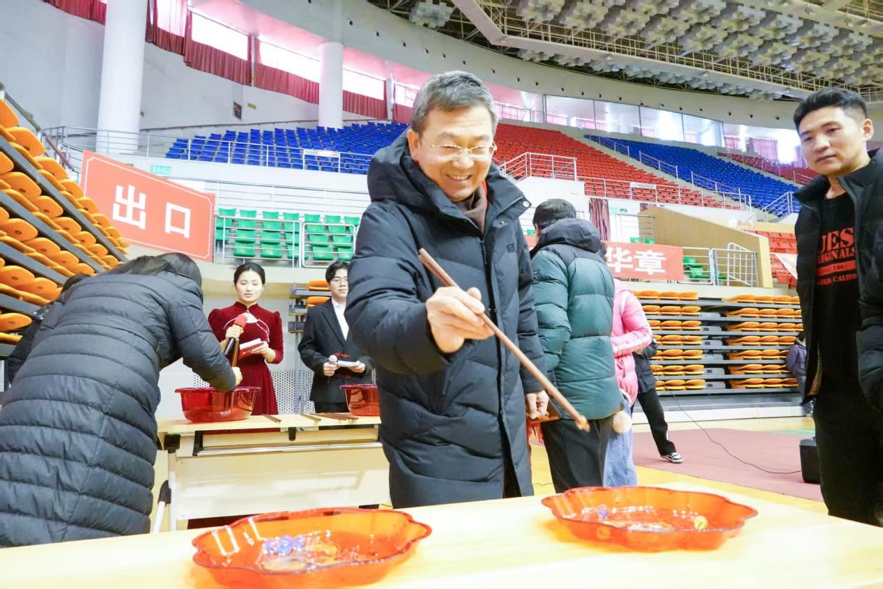 本次活动紧扣“同大凝心绘新篇 趣味游艺暖校园”主题,兼顾不同年龄段、不同学科教职工需求,校工会精心设置了10个项目多元游艺项目。团体协作类的“运转乾坤”考验默契,个人挑战类的“盲人敲锣”“双龙夺珠”“吹乒乓球”充满趣味,“笔走春章·联韵迎新”让教职工在书法老师指导下书写福字春联,“新年欢歌嘉年华”则为歌唱爱好者提供了展示舞台。每项活动完成后均可获得印章,趣味与互动感十足,不仅缓解了教职工教学科研的工作压力,更打破了部门与学科壁垒,让大家在欢声笑语中增进了交流。
