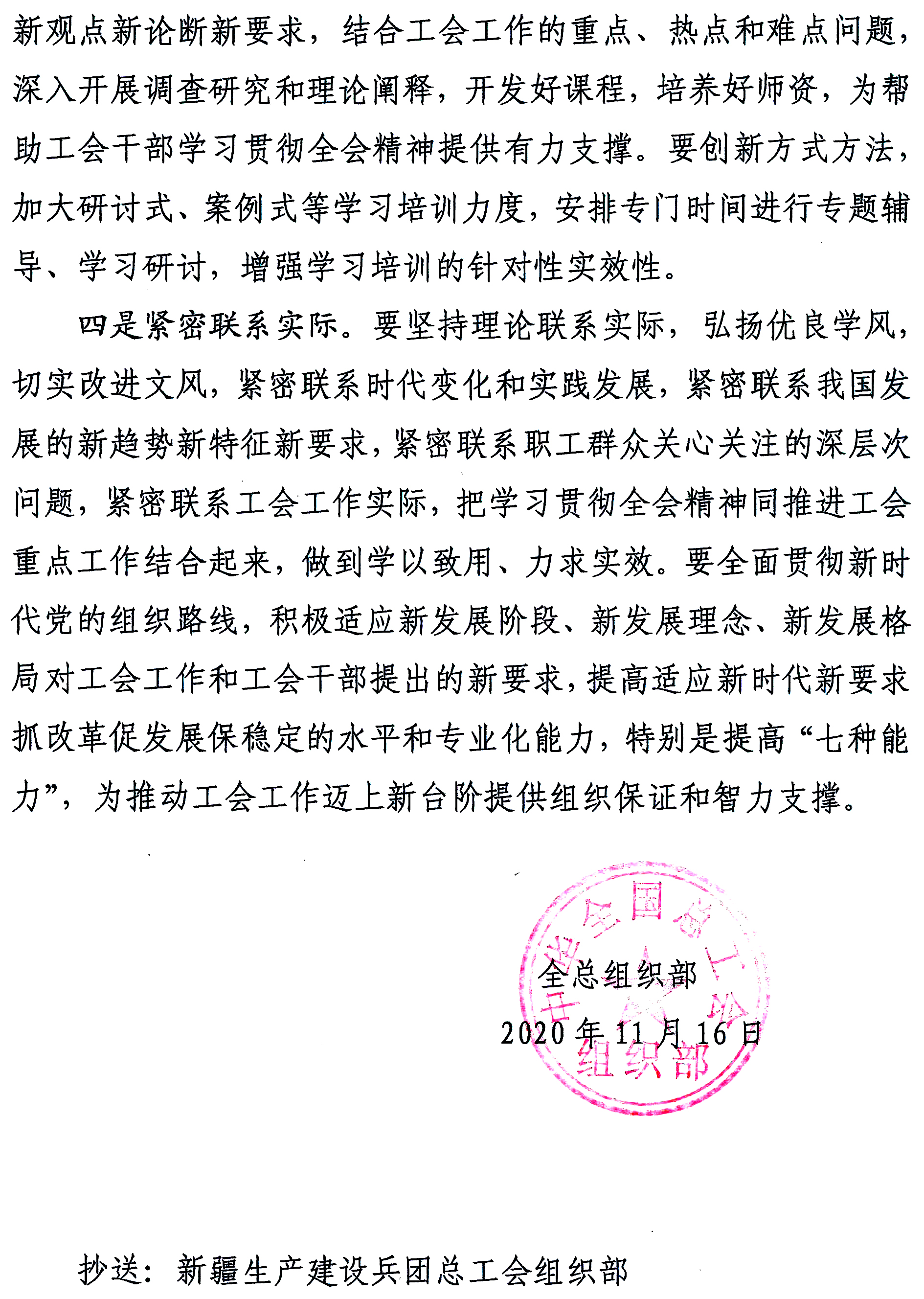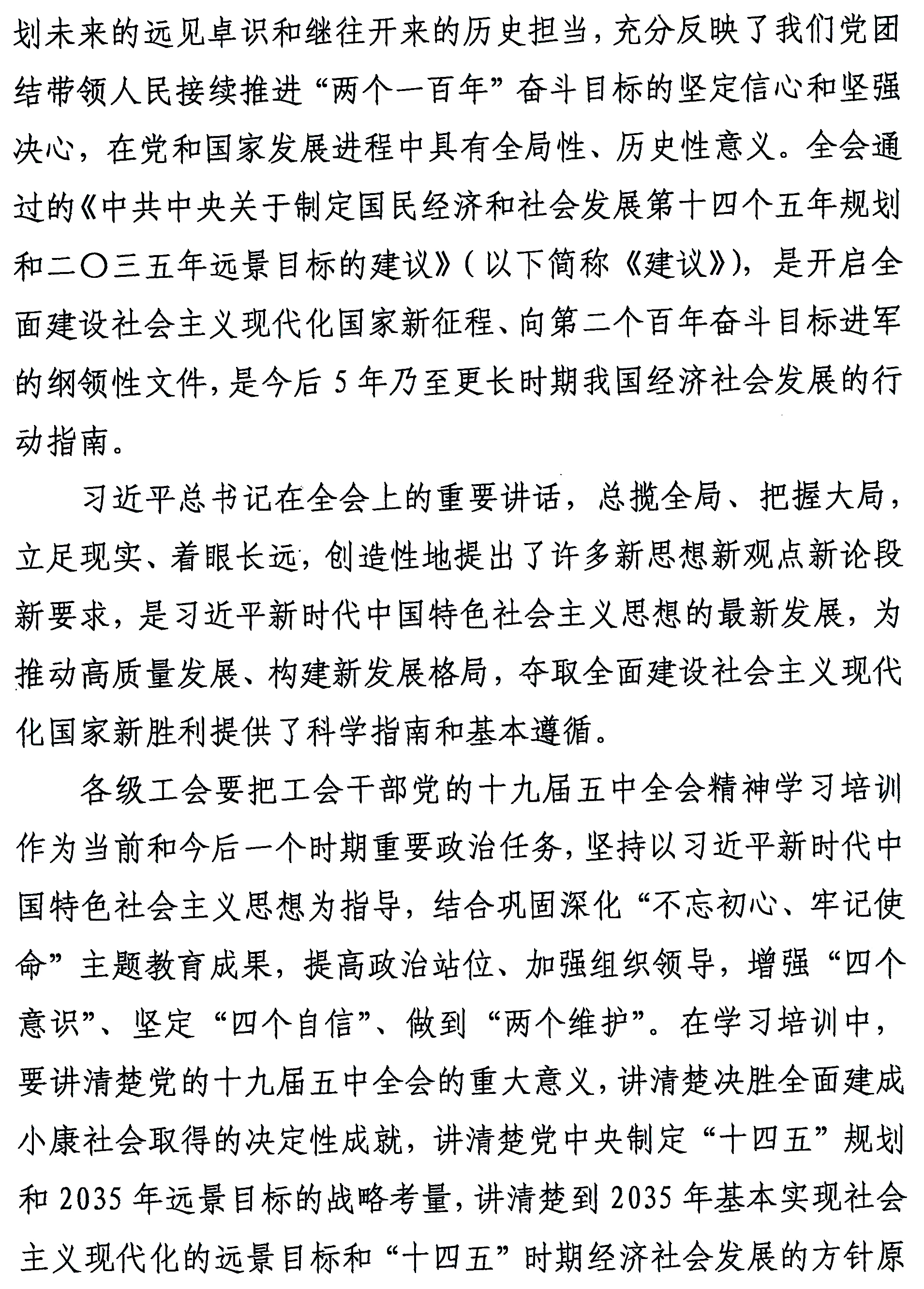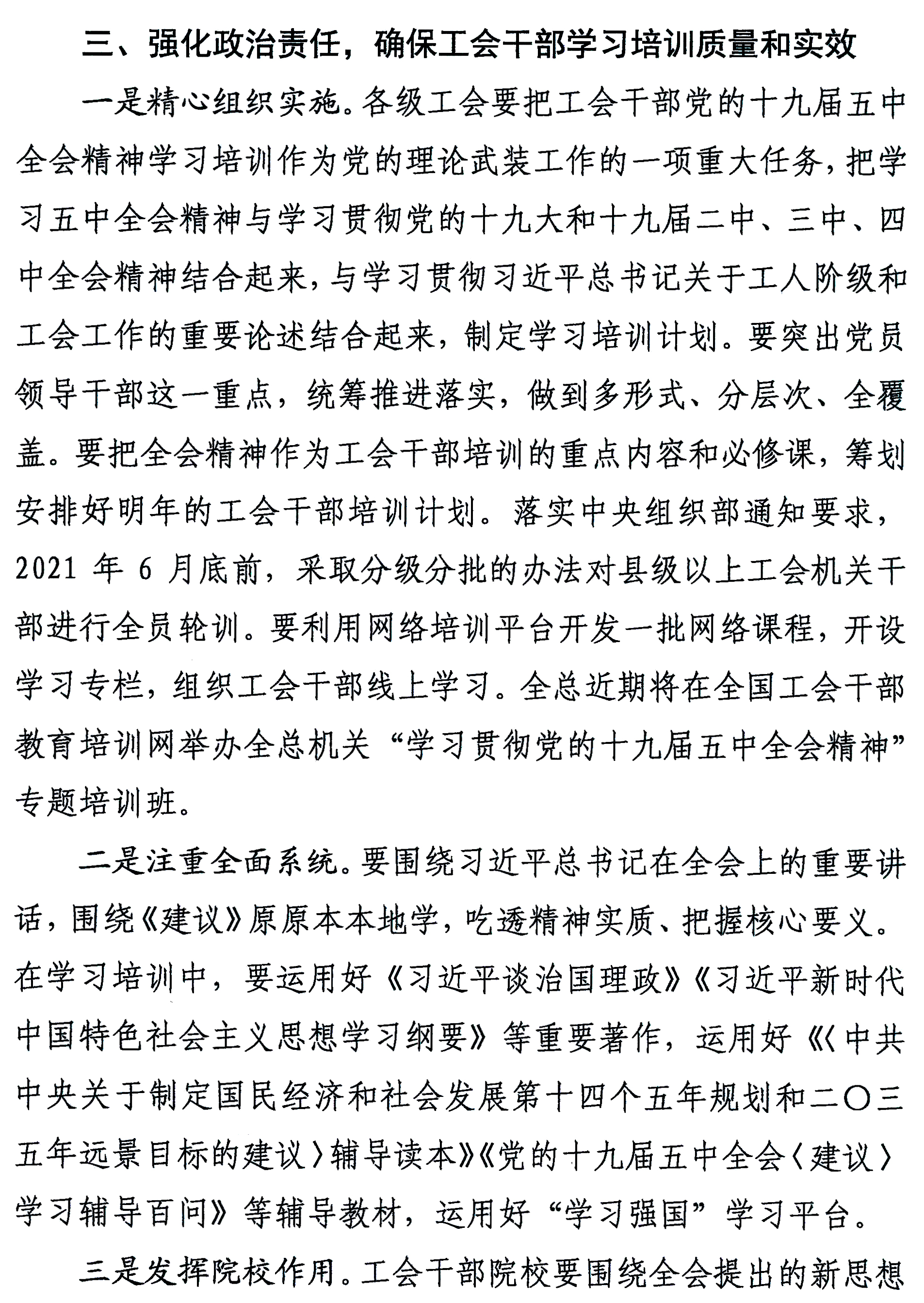 《关于抓好工会干部党的十九届五中全会精神学习培训工作的通知》(工组发〔2020〕315号)