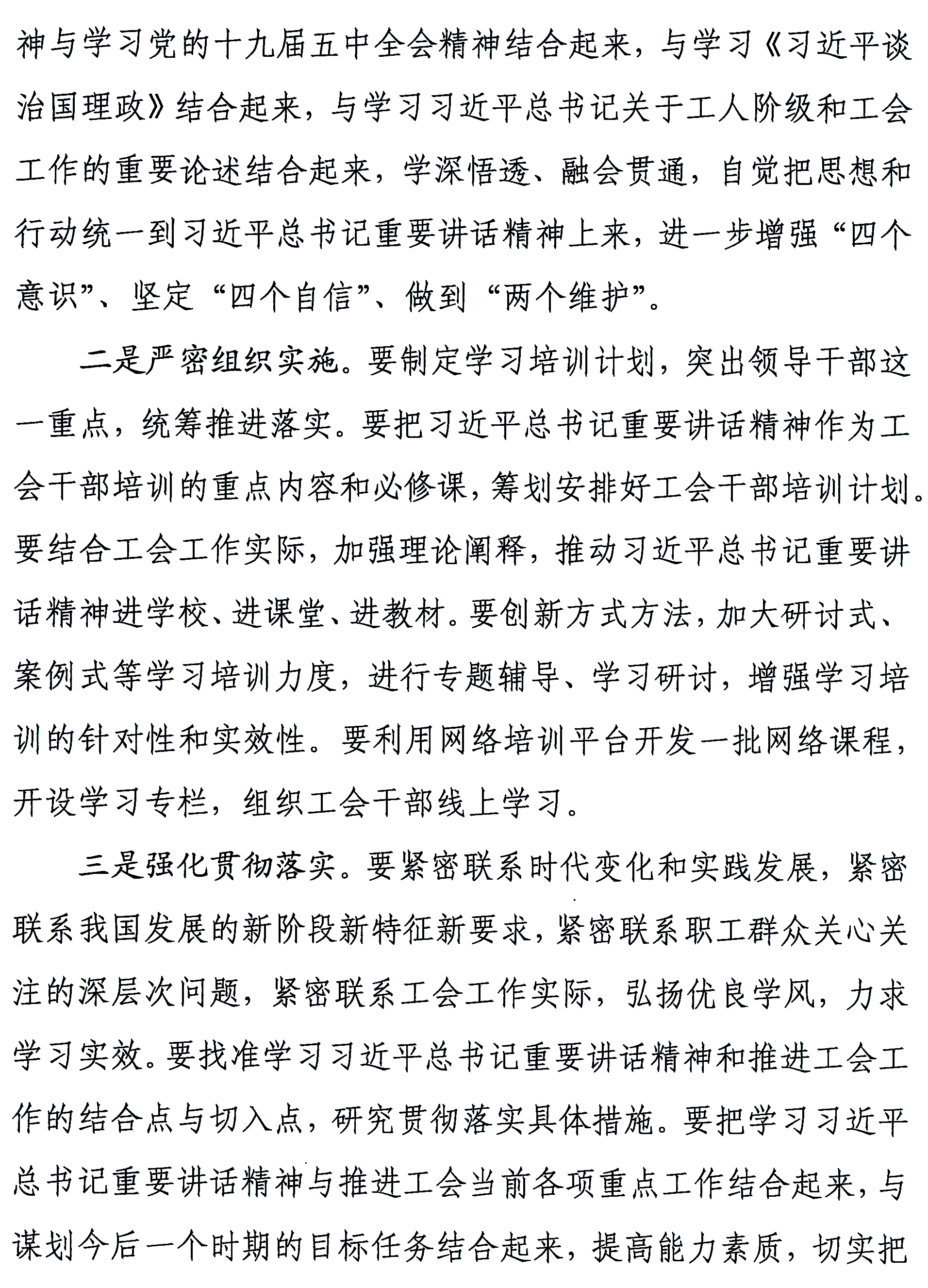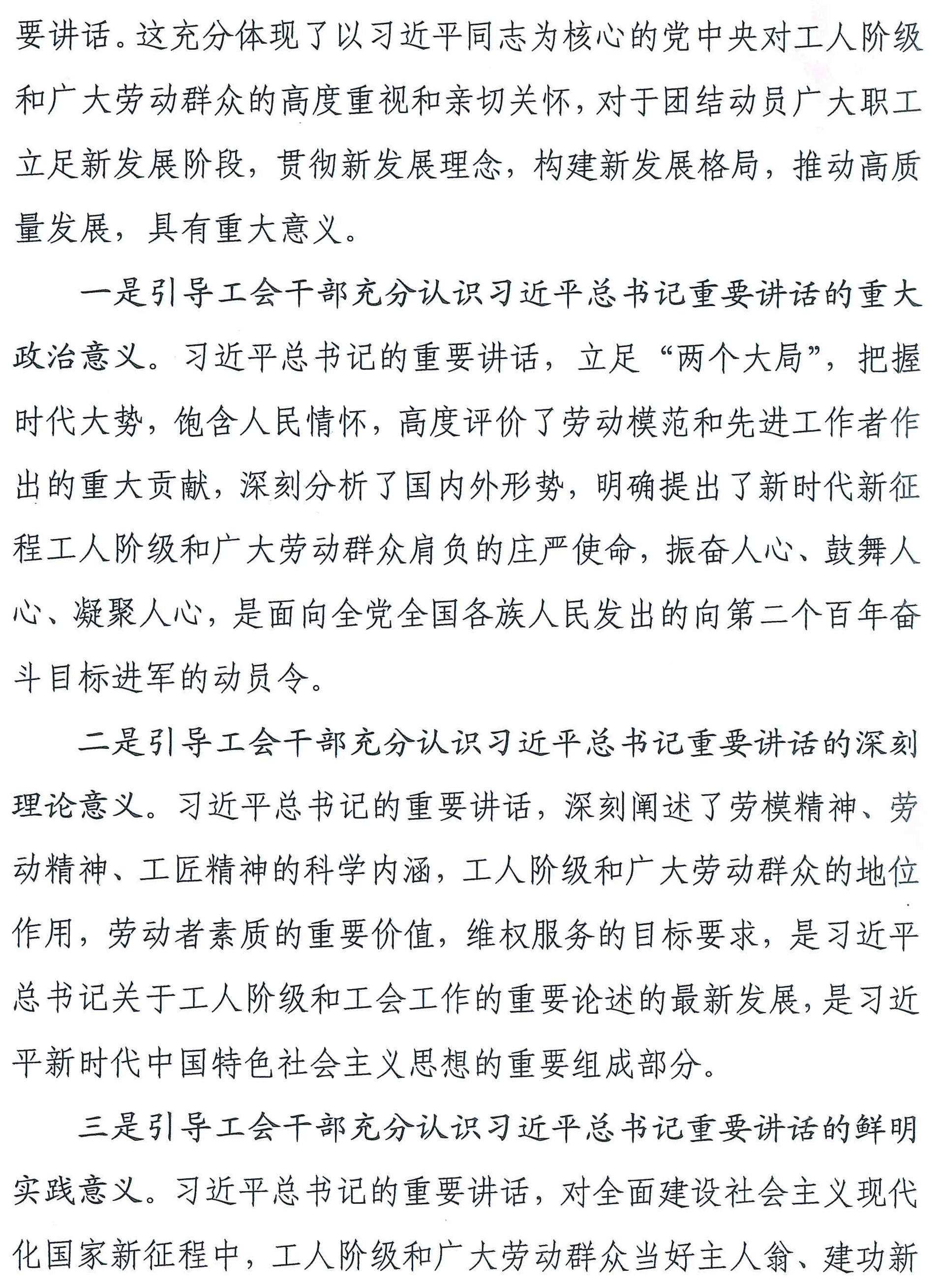 《关于做好工会干部贯彻落实习近平总书记在全国劳动模范和先进工作者表彰大会上的重要讲话精神学习培训工作的通知》(工组发〔2020〕333号)