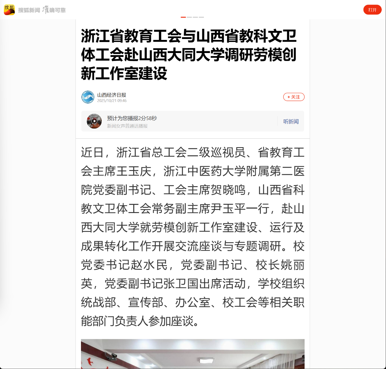 此次浙晋工会联合调研,不仅加强了两省教育工会与高校的工作联系,更为双方分享劳模创新工作室建设经验、探索新形势下工会工作新思路提供了宝贵平台,将对激发教职工创新创造活力、助推高校教育事业高质量发展产生积极深远影响。