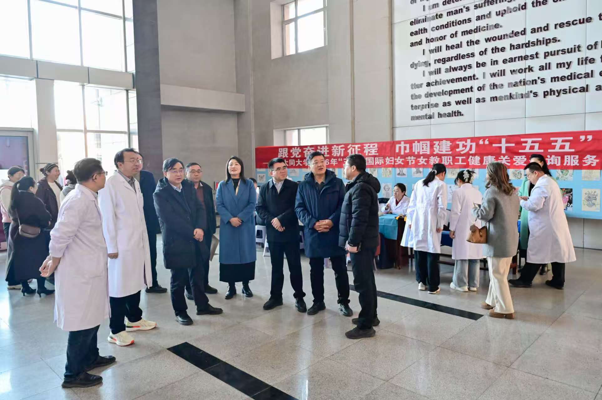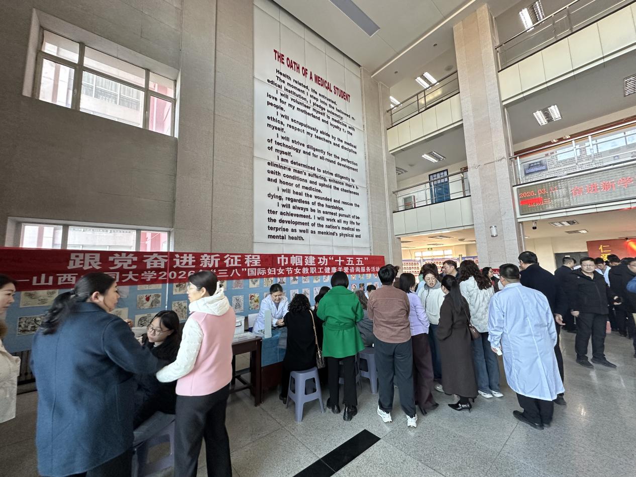 为庆祝第116个“三八”国际妇女节,深入践行“我为师生办实事”服务理念,3月11日上午,由校工会、妇联与中医药健康服务学院联合主办的“跟党奋进新征程 巾帼建功‘十五五’”——山西大同大学2026年庆祝“三八”国际妇女节系列活动之女教职工健康关爱咨询服务活动在医学院一楼大厅顺利举行。